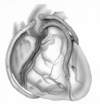 Abb. 2. Schematische Darstellung eines Dreifachbypass mit Venen auf