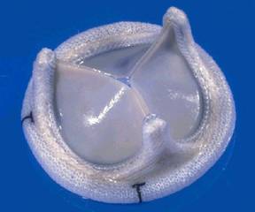 Bei künstliche Herzklappen unterscheidet man zwischen mechanischen (Abb. 1.) oder biologischen Prothesen (Abb. 2.). Mechanische Prothesen, heute meist Doppelflügelklappen, halten theoretisch unbegrenzt, sind somit die Prothese des jüngeren Patienten, erfordern aber lebenslange konsequente Blutverdünnung (orale Antikoagulation). Diese kann auch vom Patienten selbst durchgeführt werden. Handliche Messgeräte (z.B. CoaguChek®) ermöglichen die Bestimmung des Blutgerinnungswertes (INR) in ähnlich einfacher Form wie die Bestimmung des Blutzuckerwertes durch den Diabetiker selbst. Eine permanente Blutverdünnung bedeutet jedoch auch für den betroffenen Patienten ein ständiges, kleines Risiko lebensbedrohlicher Blutungskomplikationen (z.B. Hirnblutungen, Thrombenbildung und Embolien).