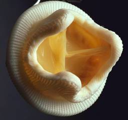 Abb. 2. biologische Herzlappen, links aus Rinderpericard, rechts eine Schweineklappe